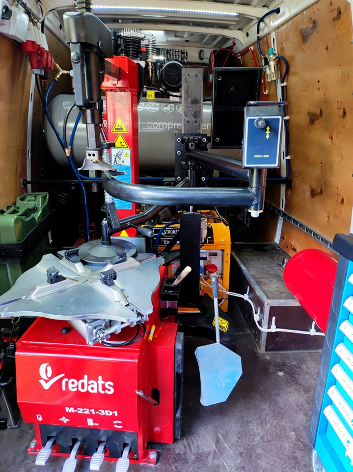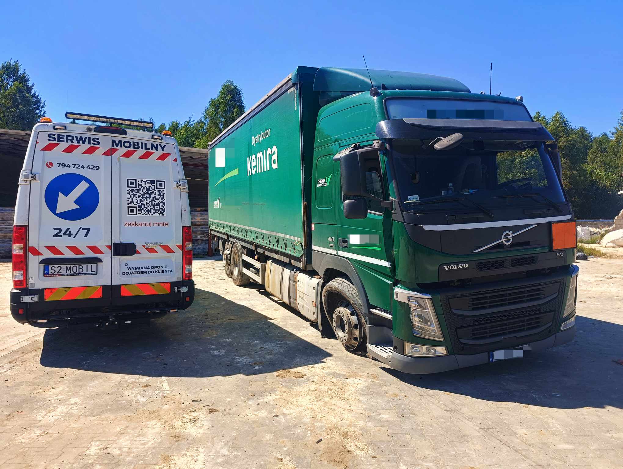 Mobilna wulkanizacja to szybki dojazd na miejsce awarii ciężarówki, naczepy, busa, samochodu osobowego w celu naprawy lub wymiany opony bez konieczności holowania pojazdu.
